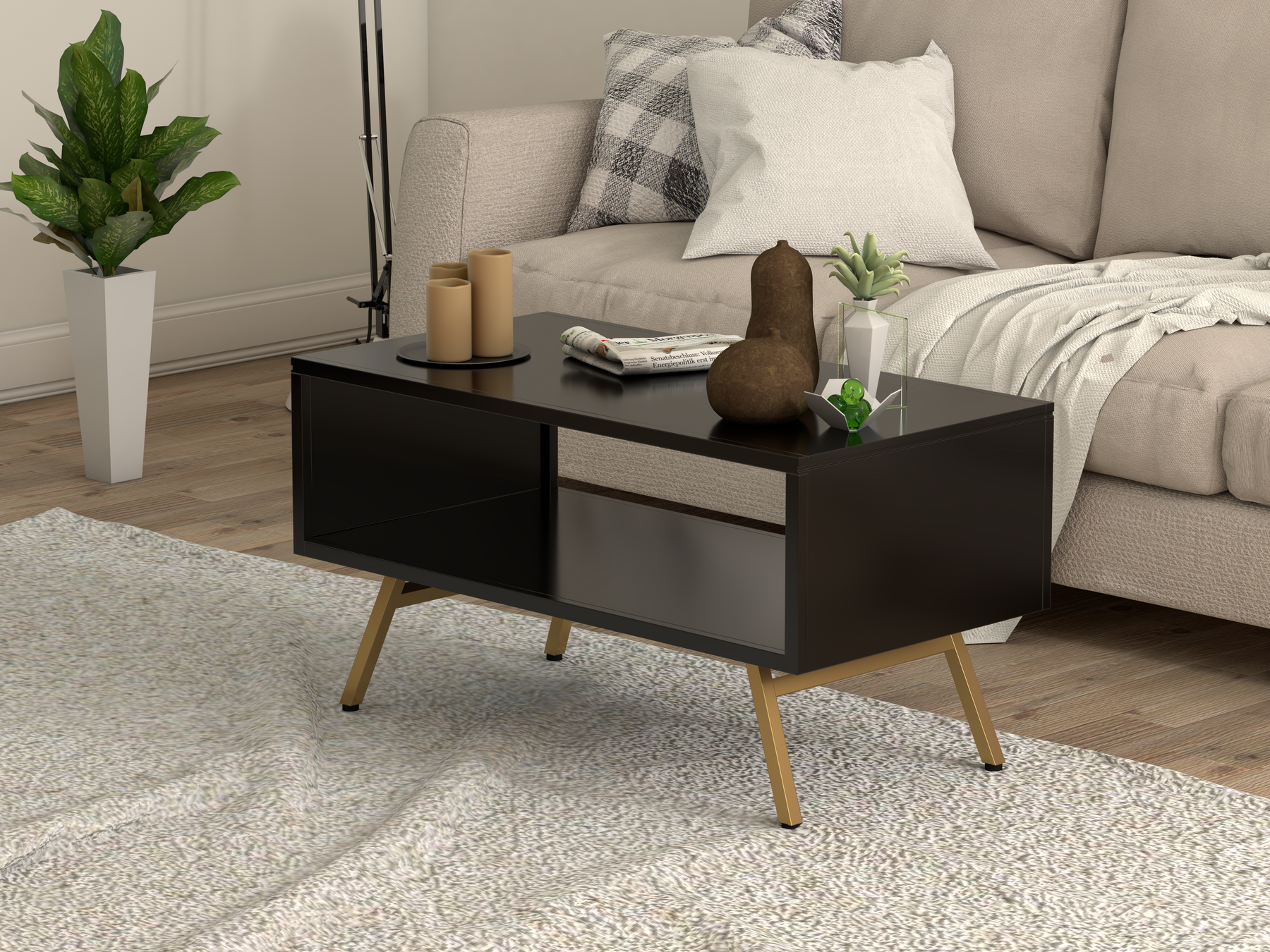 Gloss-Black and powder-coated gold finish